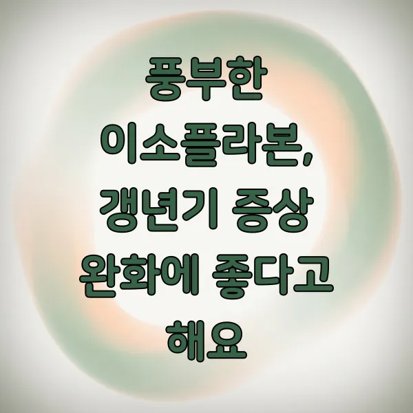 물론 개인차가 있을 수 있지만, 콩을 통해 자연스럽게 이소플라본을 섭취하는 것은 갱년기를 좀 더 편안하게 보내는 데 긍정적인 영향을 줄 수 있어요. 콩물이나 두부 등을 꾸준히 드셔보시는 건 어떨까요?